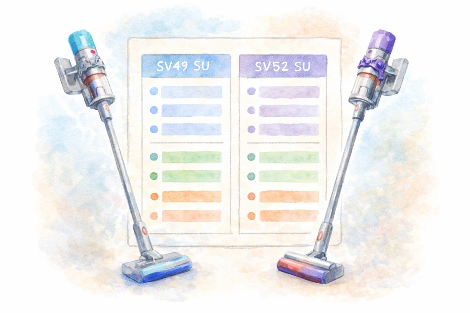 SV49 SUとSV52 SUは、どちらも水拭き対応の便利なコードレス掃除機ですが、向いている人ははっきり分かれやすいモデルです。