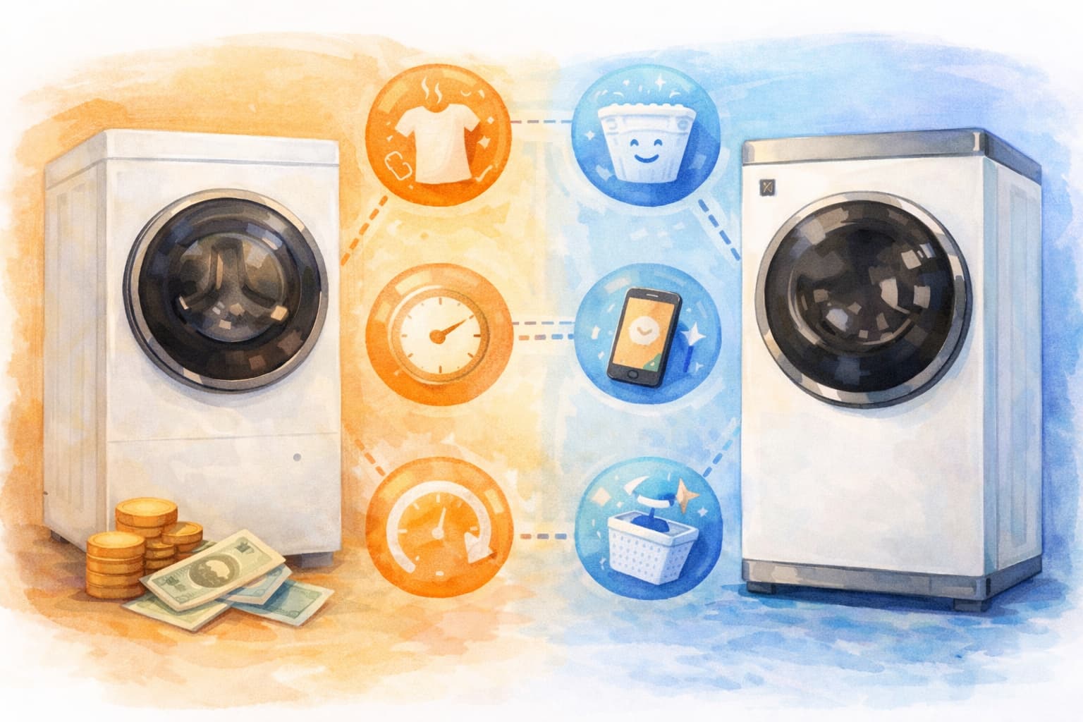 洗濯機はスペック表だけでは見えにくい部分が多く、乾燥の考え方や洗浄機能、お手入れ、静音性、電気代のかかり方など、毎日使う中で差が出やすいポイントを押さえることが大切です。