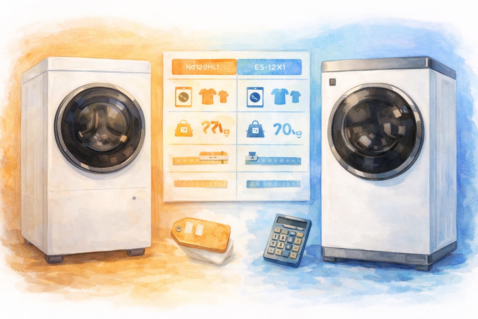 この記事では、ニトリ ND120HL1とシャープ ES-12X1の違いをわかりやすく整理しながら、それぞれがどんな人に向いているのかまで詳しく解説していきます。