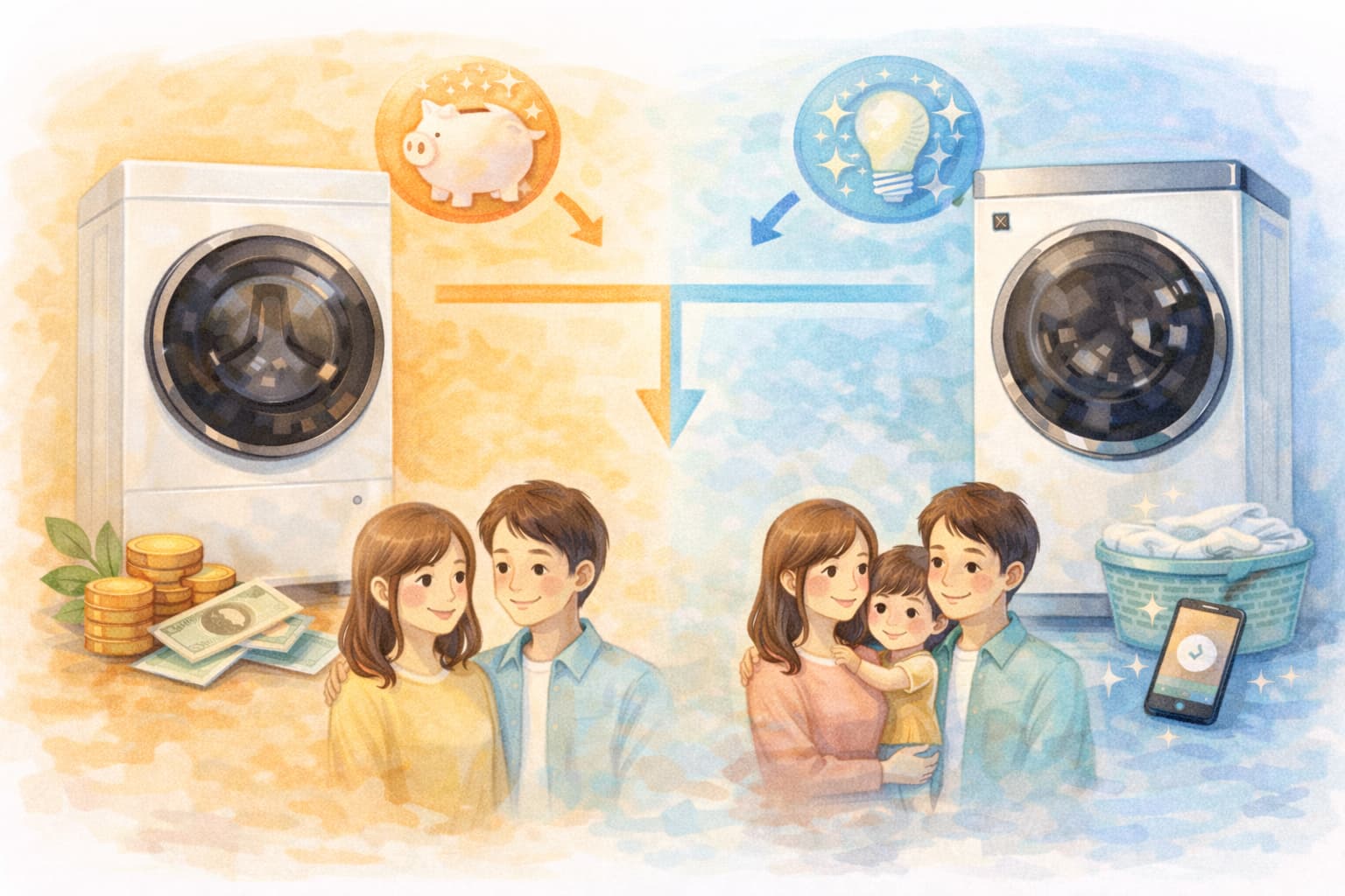 特に洗濯から乾燥まで頻繁に使う家庭では、消費電力量や使用水量の差が積み重なって、長期的なランニングコストに影響しやすくなります。