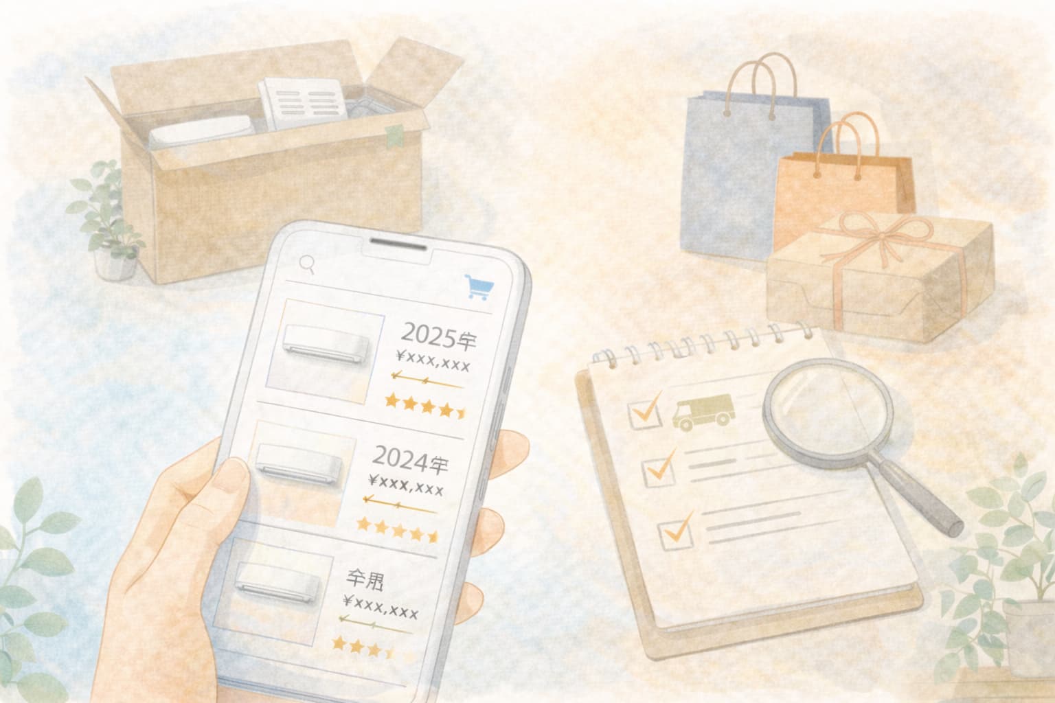 新型を買って安心したいのか、型落ちでお得に買いたいのか、部屋に本当に合っているか、必要な機能は何かを事前に確認しておくだけで、選びやすさはかなり変わります。