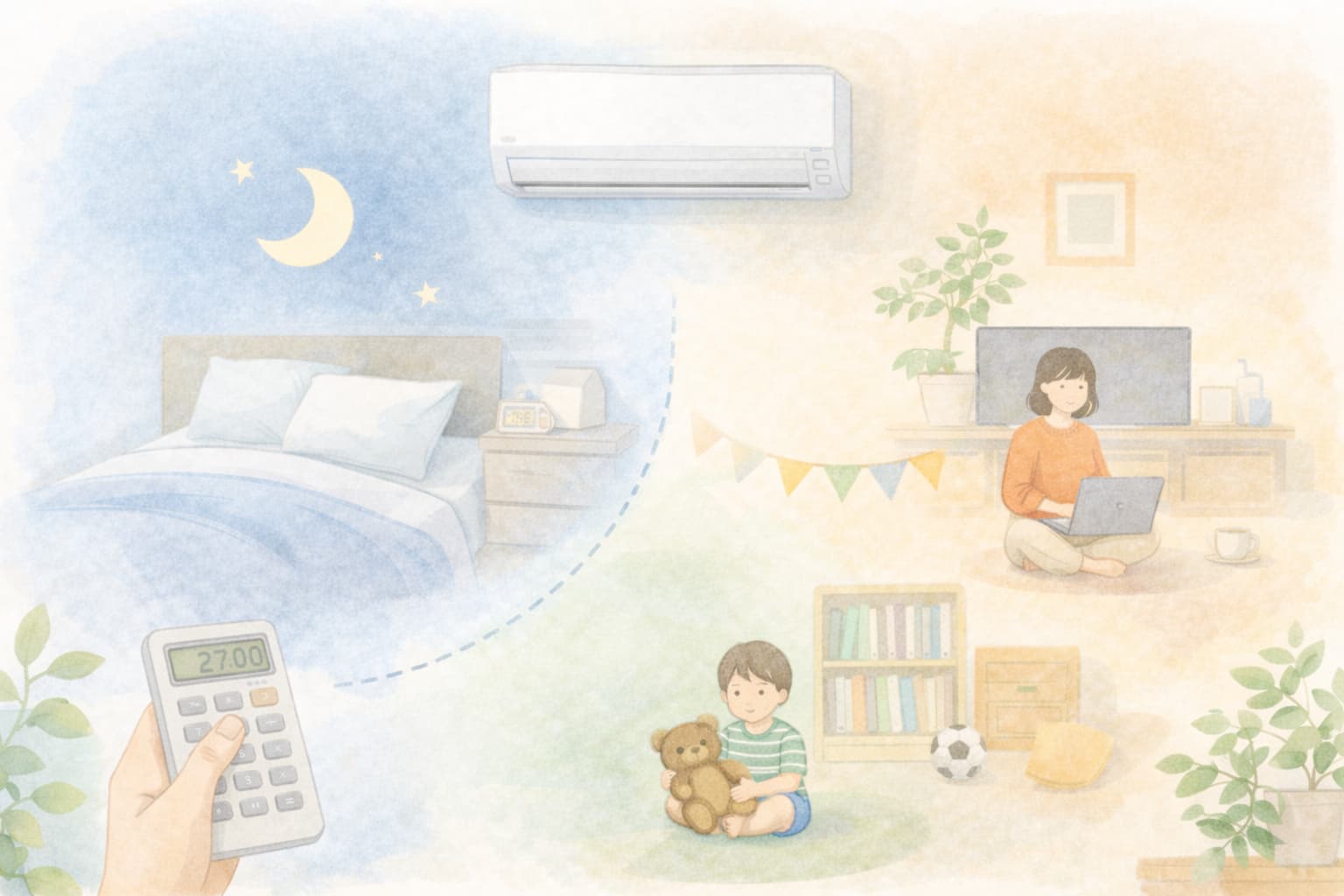 ただし、部屋の断熱性や日当たり、使う時間帯によって感じ方は変わるため、適用畳数に無理がないかは事前に確認したいです。