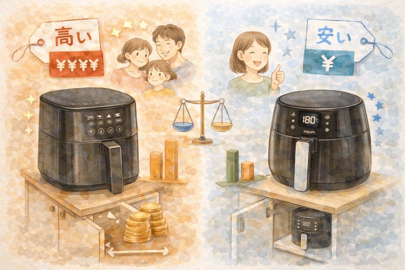家族用のメイン調理を重視するならCOSORI、少量を気軽に使いたいならPhilips HD9530/22という軸が見えてくるでしょう。