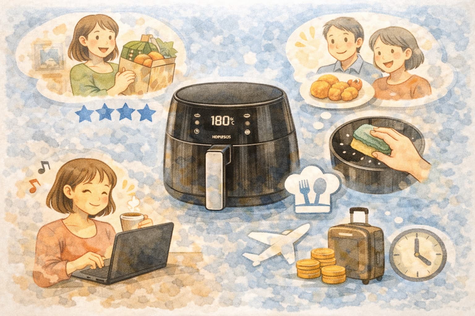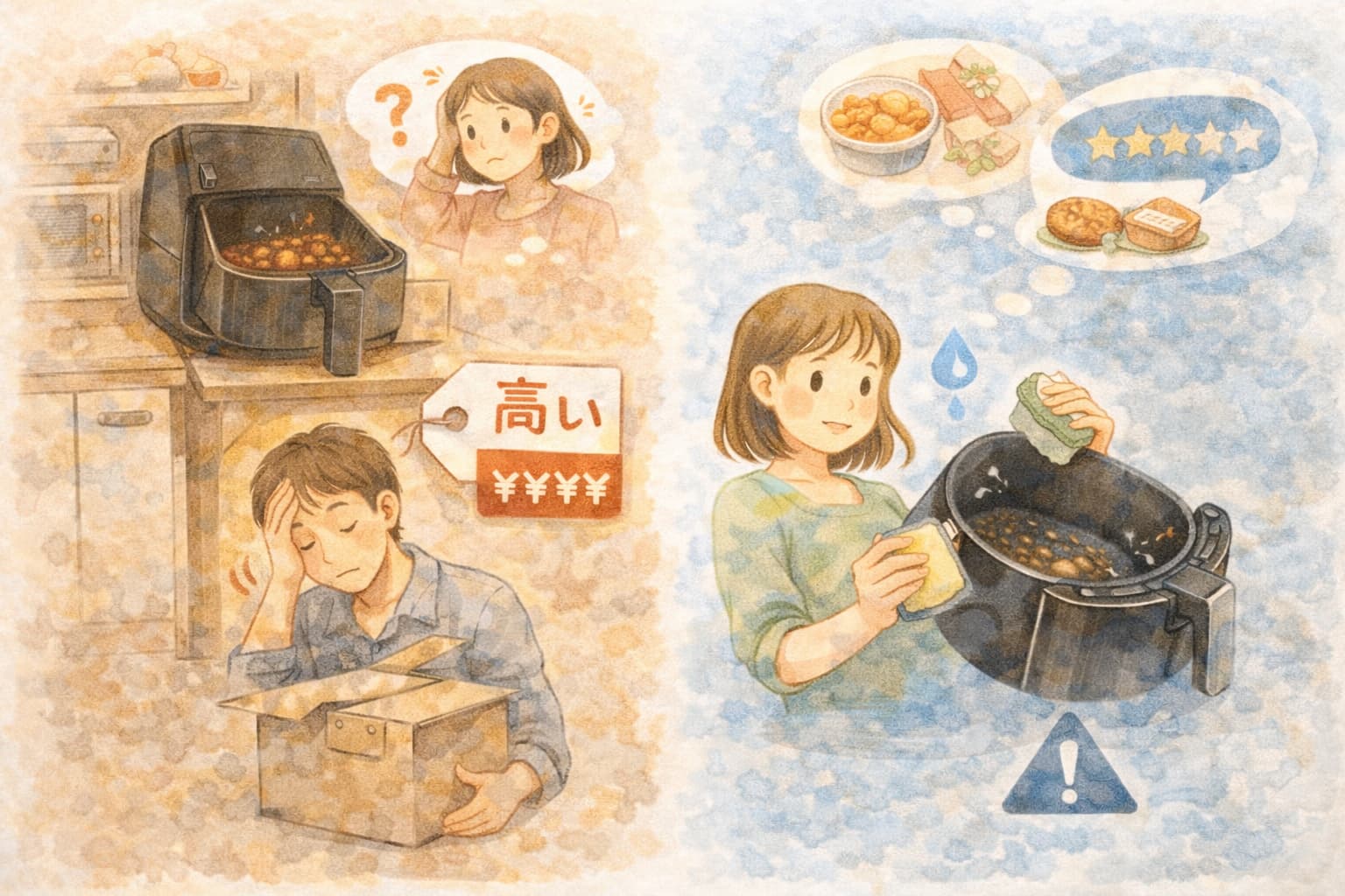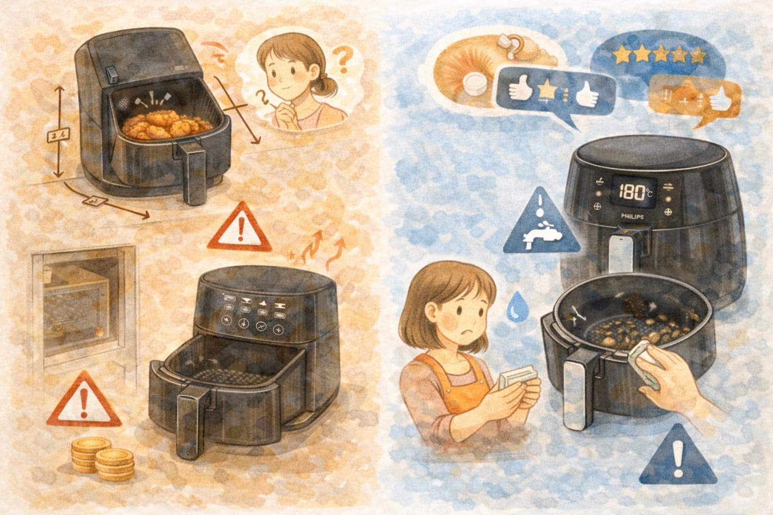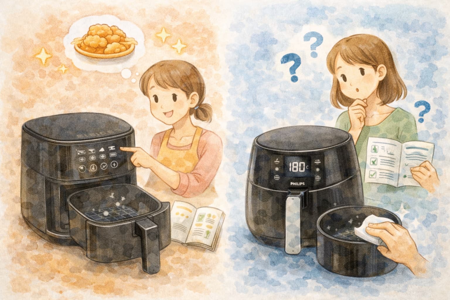 ノンフライヤーは調理中の便利さだけでなく、洗って片付けるまでが一連の流れなので、面倒に感じにくいほうを選ぶことが長く使うコツです。
