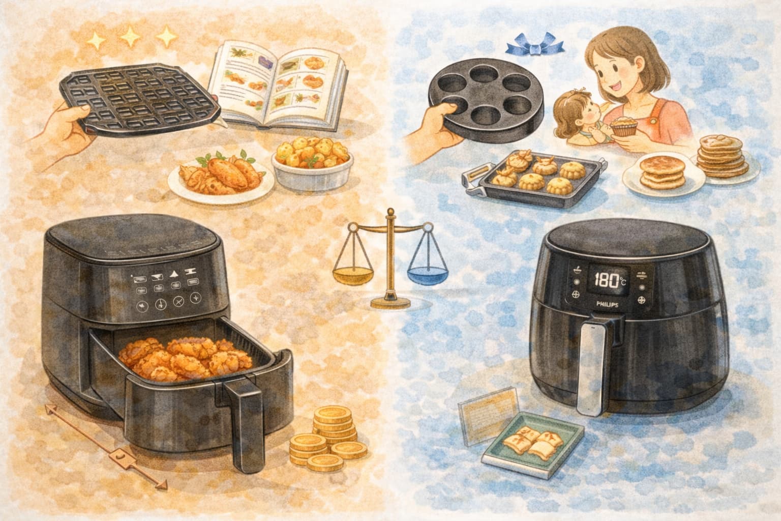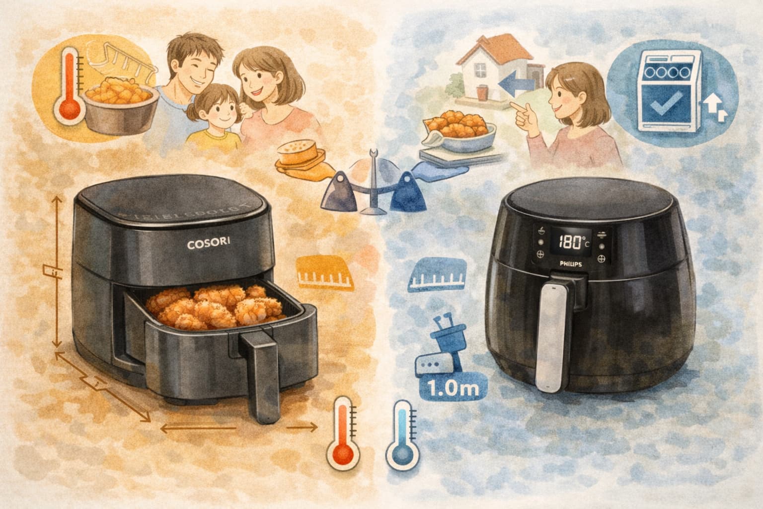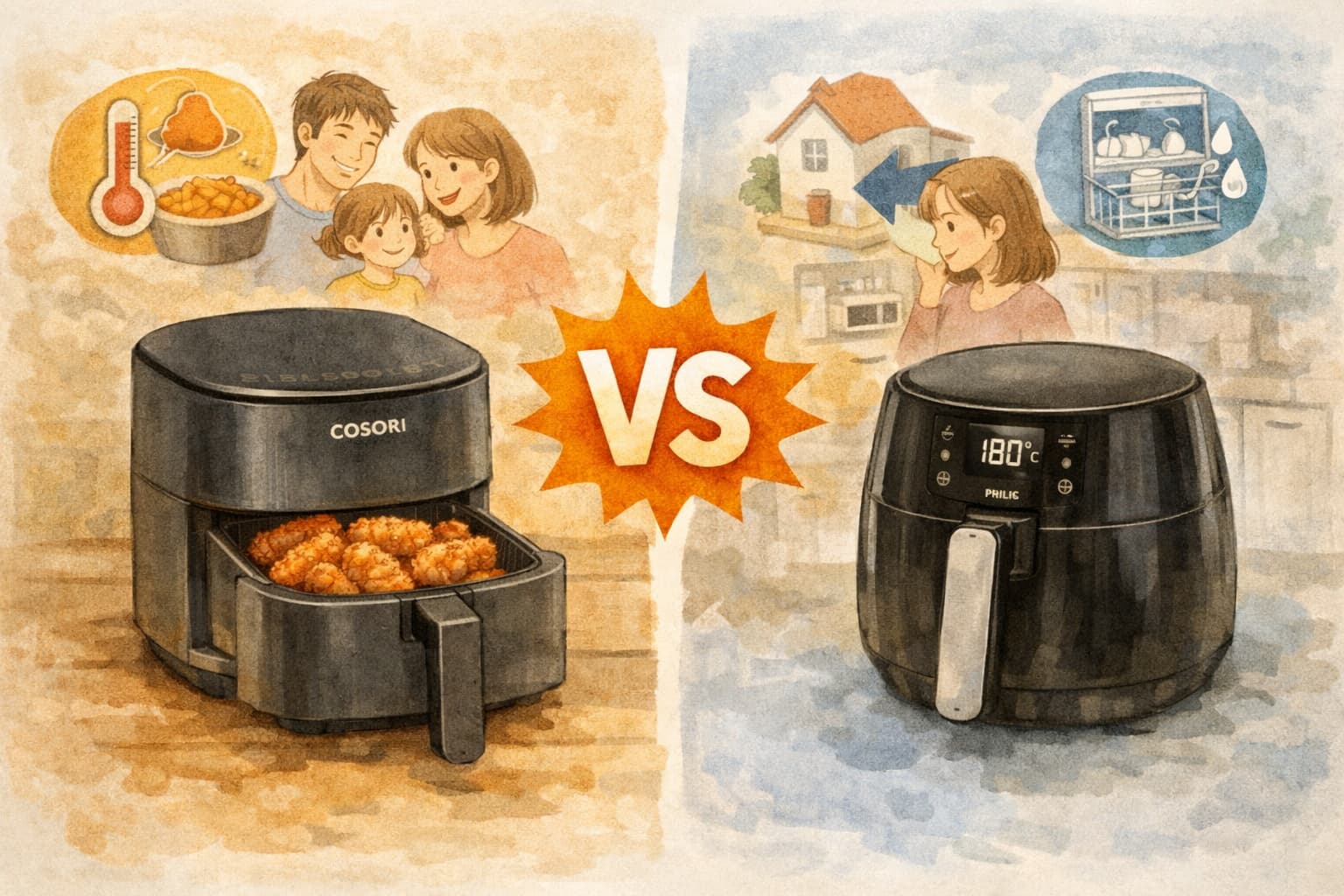 ここまで比較してきたように、COSORIとPhilips HD9530/22は同じノンフライヤーでありながら、重視している価値が大きく異なります。
