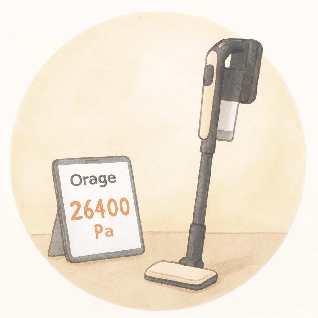 一般的な家庭用コードレス掃除機の吸引力が15,000〜20,000Pa前後であることを考えると、Orage RR11の26400Paは明らかに上位性能です。