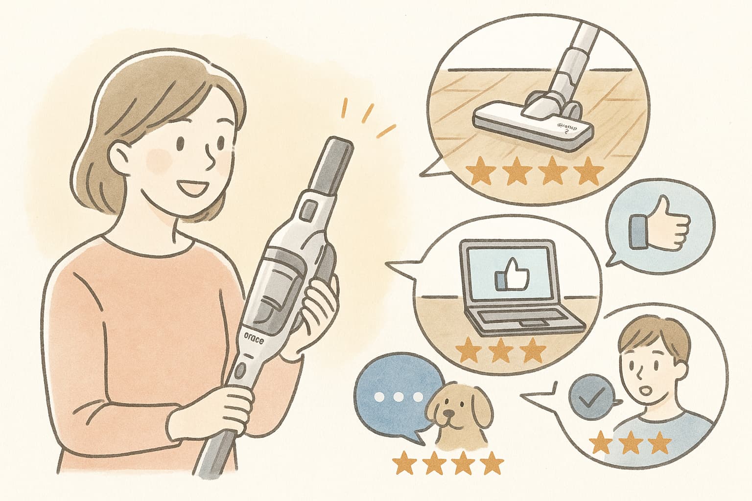 SNSやレビューサイトでは、「見た目がシンプルでおしゃれ」「音が静かで子どもが寝ていても気にならない」「思っていたより軽くて毎日掃除が苦じゃなくなった」といった好意的なコメントが目立ちます。