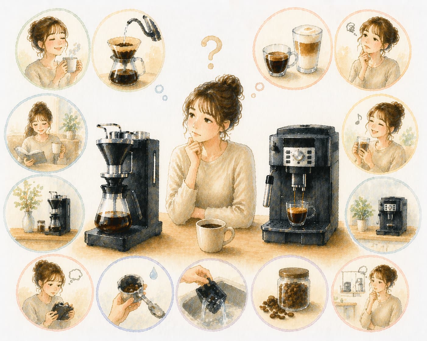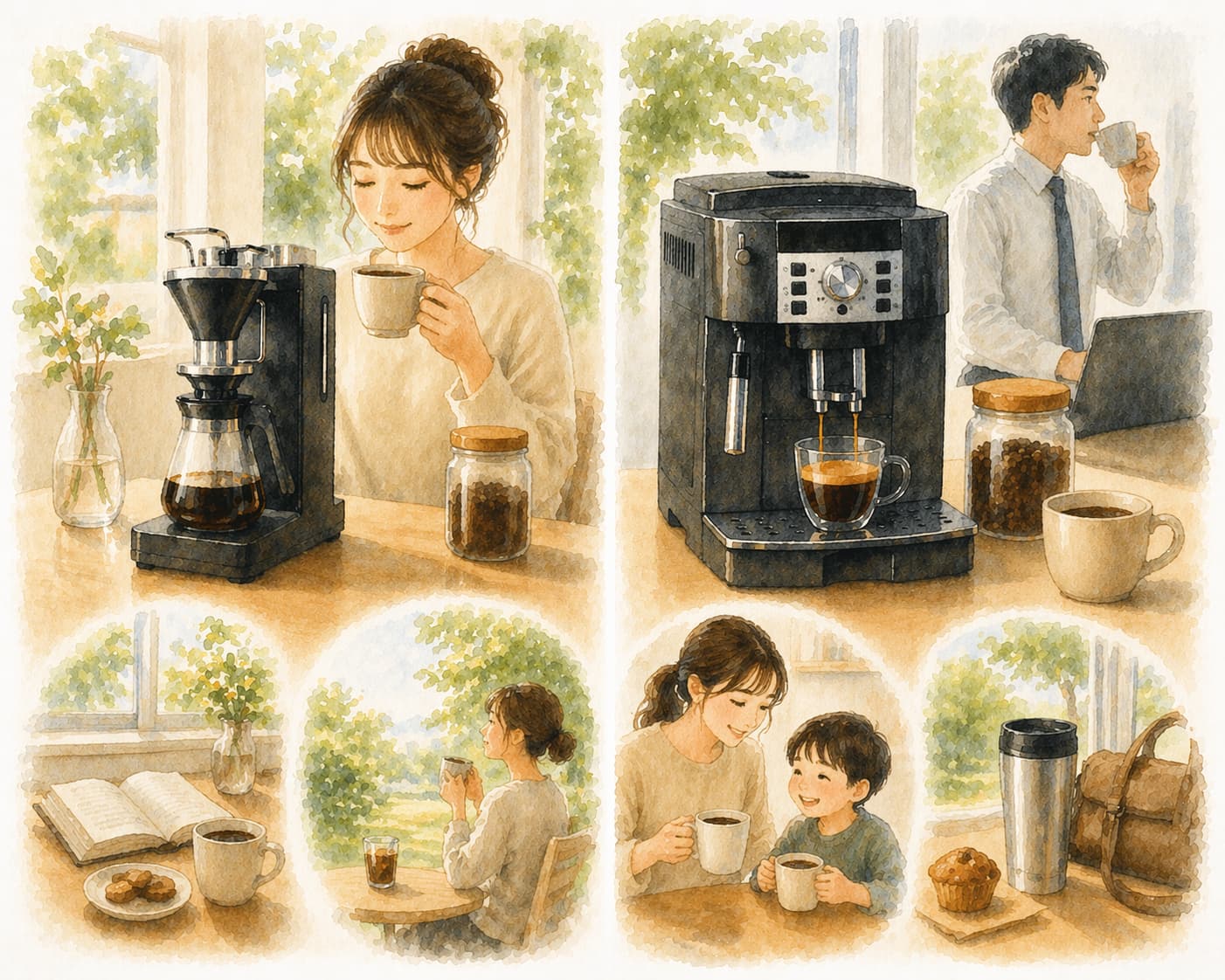 コーヒー家電を選ぶときは、価格差に意識が向きやすいですが、実際にはどのように使うかとの相性が満足度を左右します。