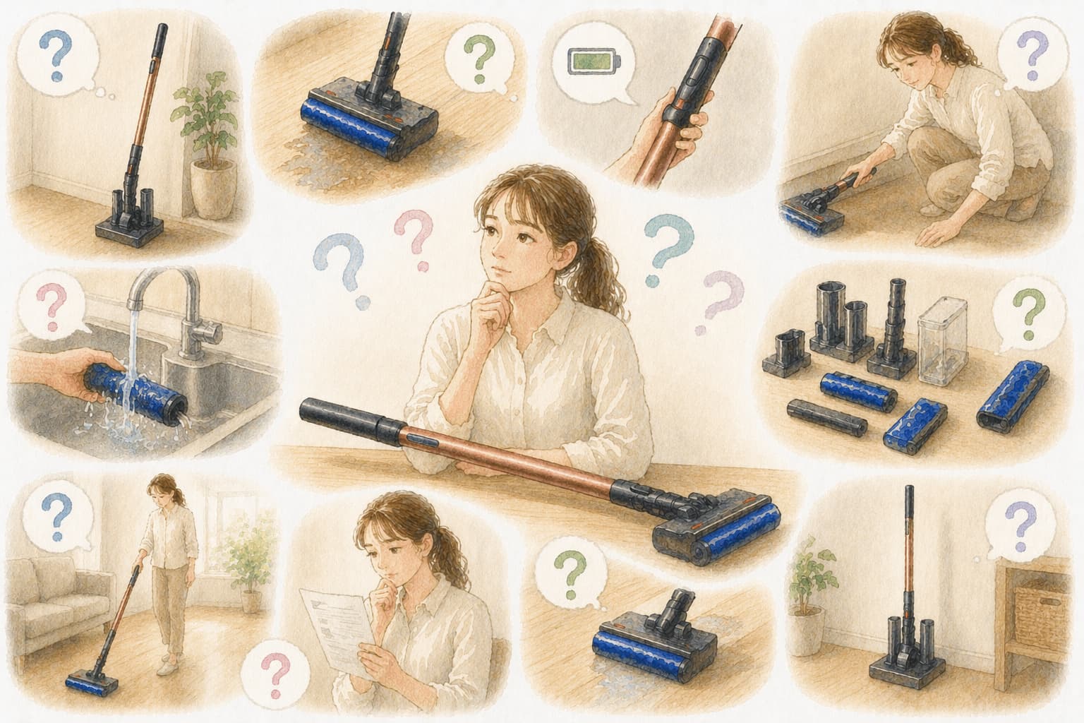 特徴は魅力的でも、実際にはどのような使い方になるのか、普通の掃除機とどう違うのか、毎日使って負担にならないのかなど、気になる点を整理しておきたいところです。