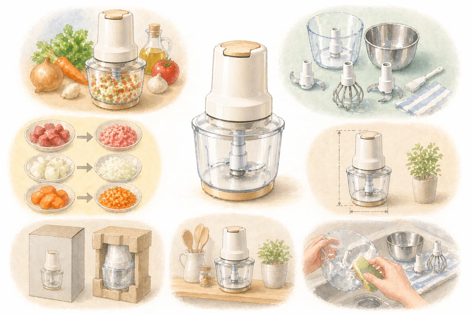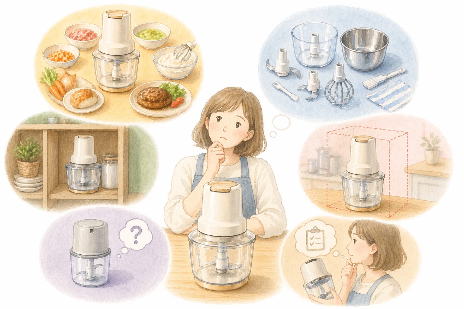 フードプロセッサーは日常で使うものだからこそ、対応できる食材やお手入れのしやすさ、初心者でも扱いやすいかどうかなど、購入前に確認しておきたい点がいくつかあります。