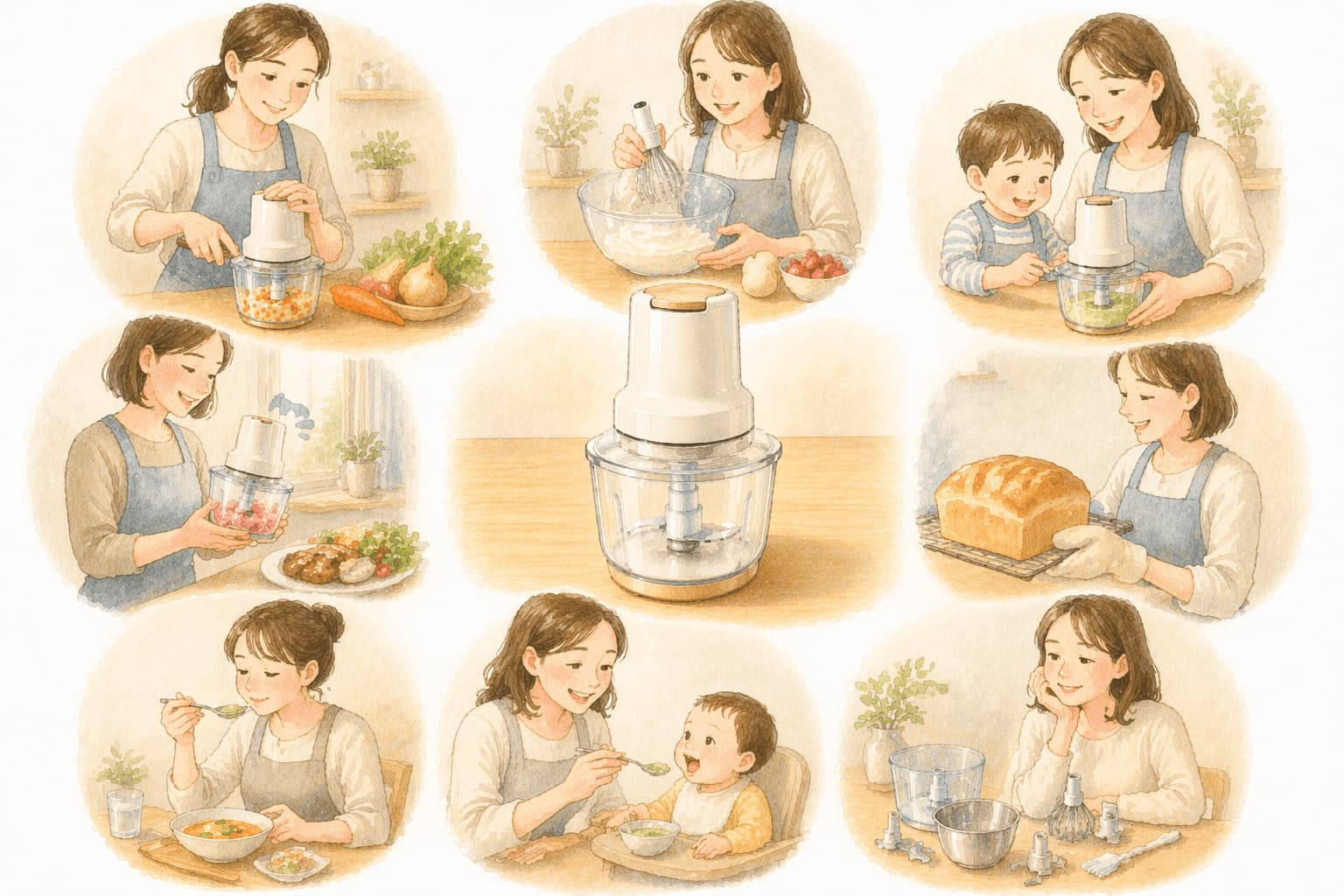 コンパクトな見た目ながら、料理の下ごしらえからお菓子作り、生地作りまで活用しやすく、単なる時短家電にとどまらない実力を持っています。
