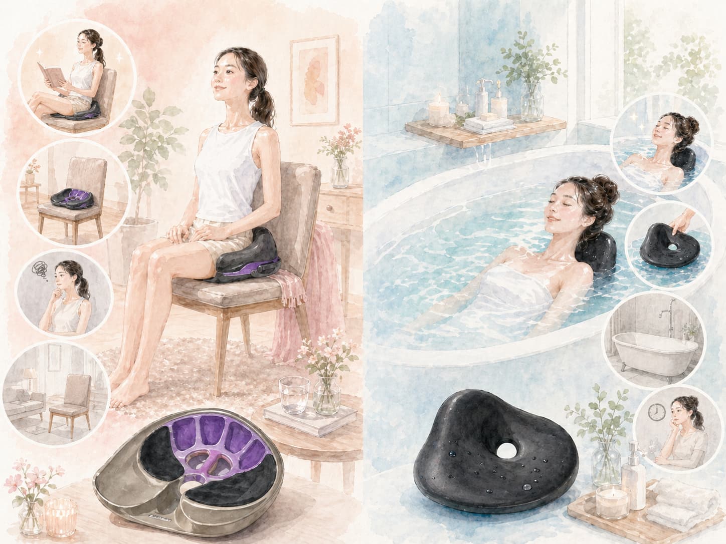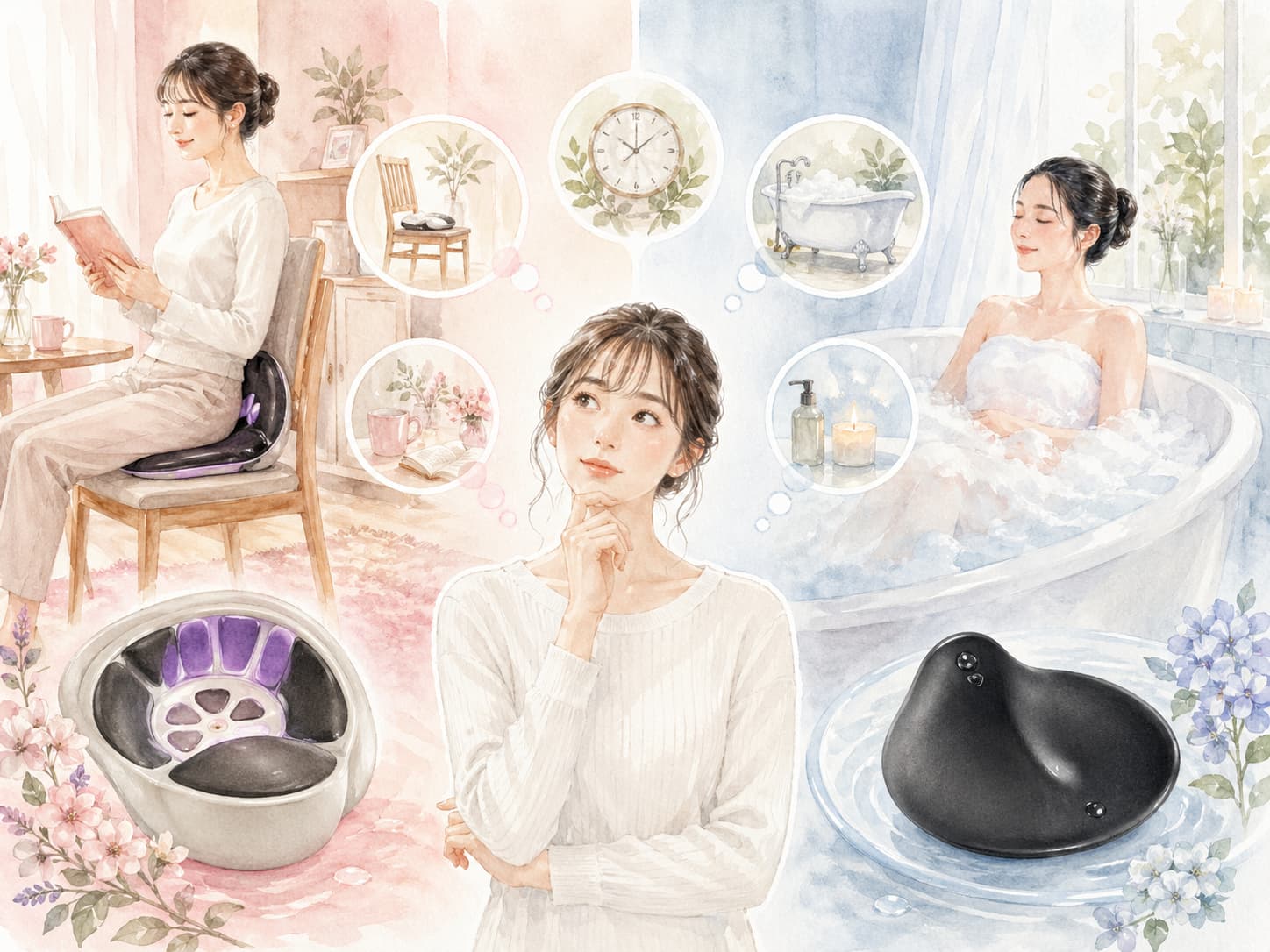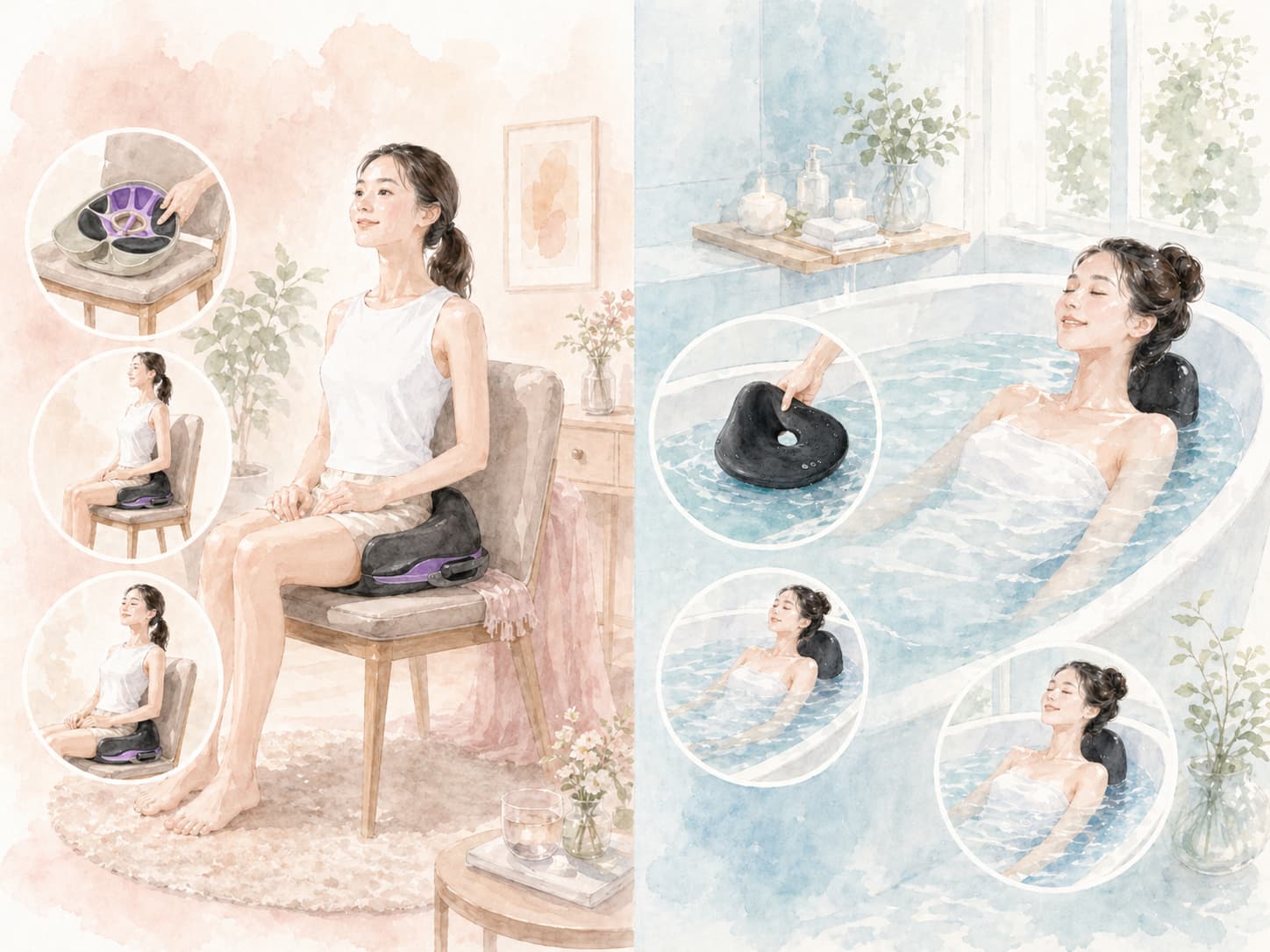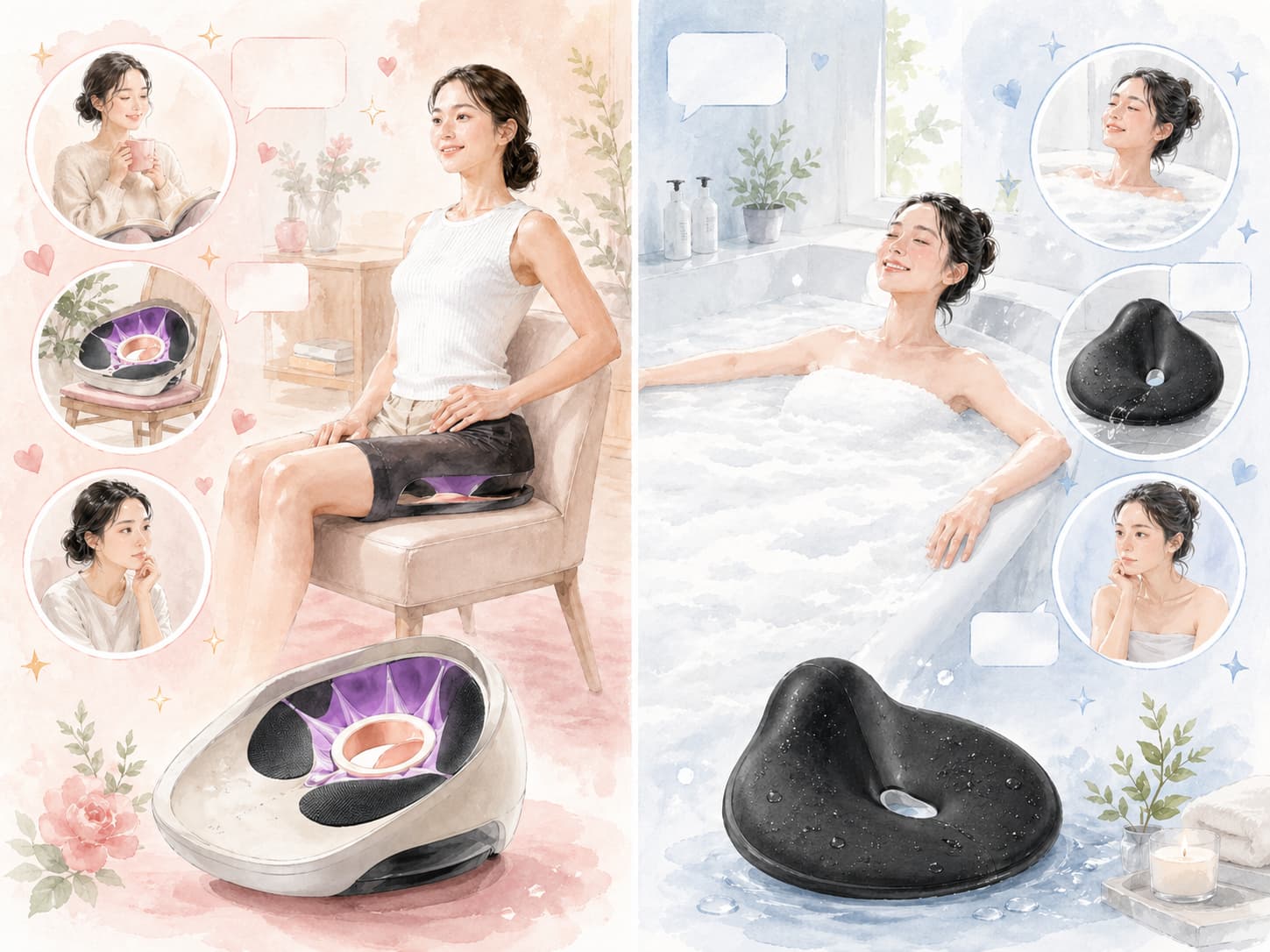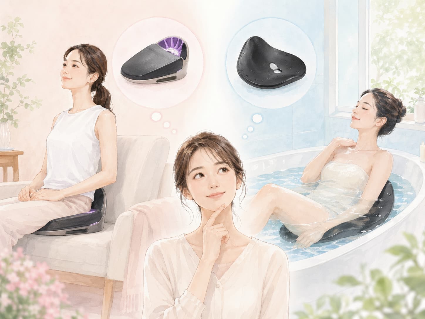 ただし、同じ骨盤底筋EMSでも、部屋で使うタイプとお風呂で使うタイプでは、準備の手間、使用感、続けやすさ、注意点が変わります。