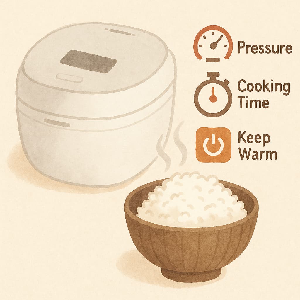 炊飯器の性能を語るうえで欠かせないのが、「火力」「圧力」「時間」の3つのバランスです。
