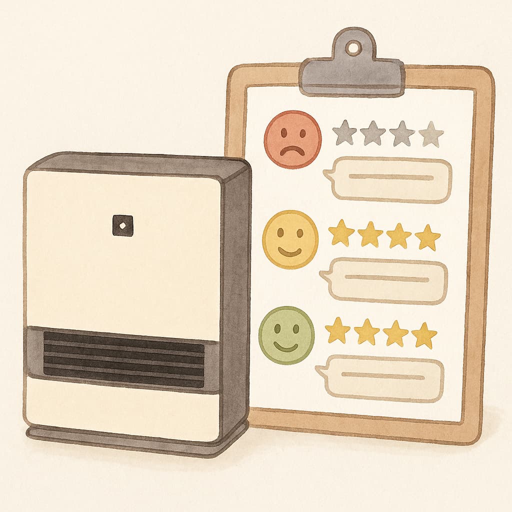 良い口コミでは、「暖房がすぐに効く」「加湿効果で部屋の乾燥が和らぐ」といったコメントが圧倒的多数を占めています。