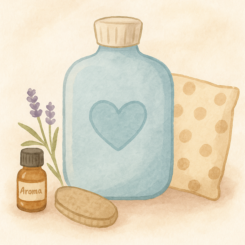 湯たんぽの温かさとアロマのやさしい香りを組み合わせて、自然な眠りのリズムを作ってみてくださいね。