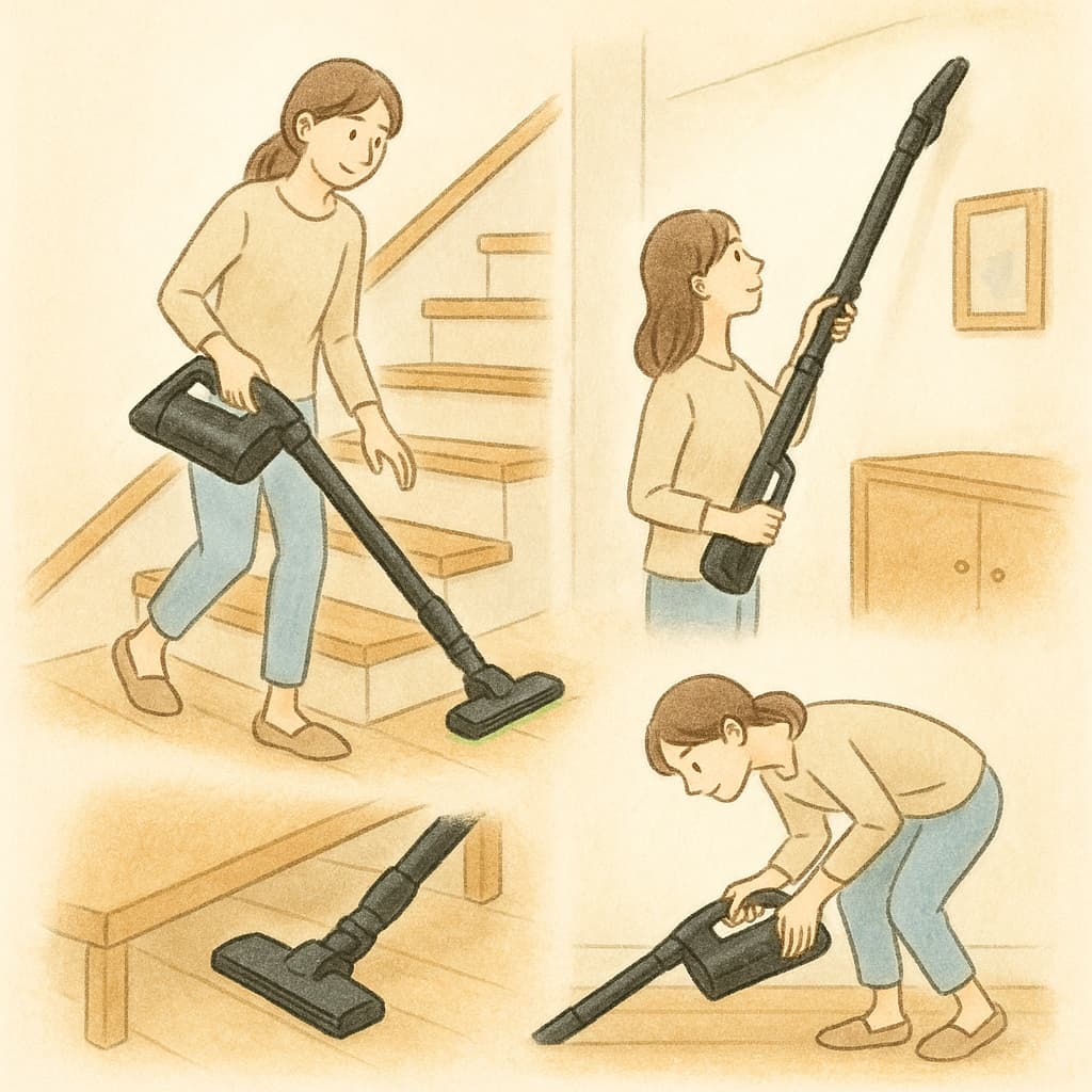 - 取り回しと操作性|階段・家具下・高い場所はどっちが得意?