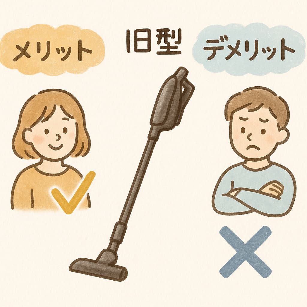 旧型・新型それぞれに強みがありますが、自分の掃除スタイルや生活環境をあらかじめ整理しておくと、買ってから「こんなはずじゃなかった」という後悔を避けやすくなります。
