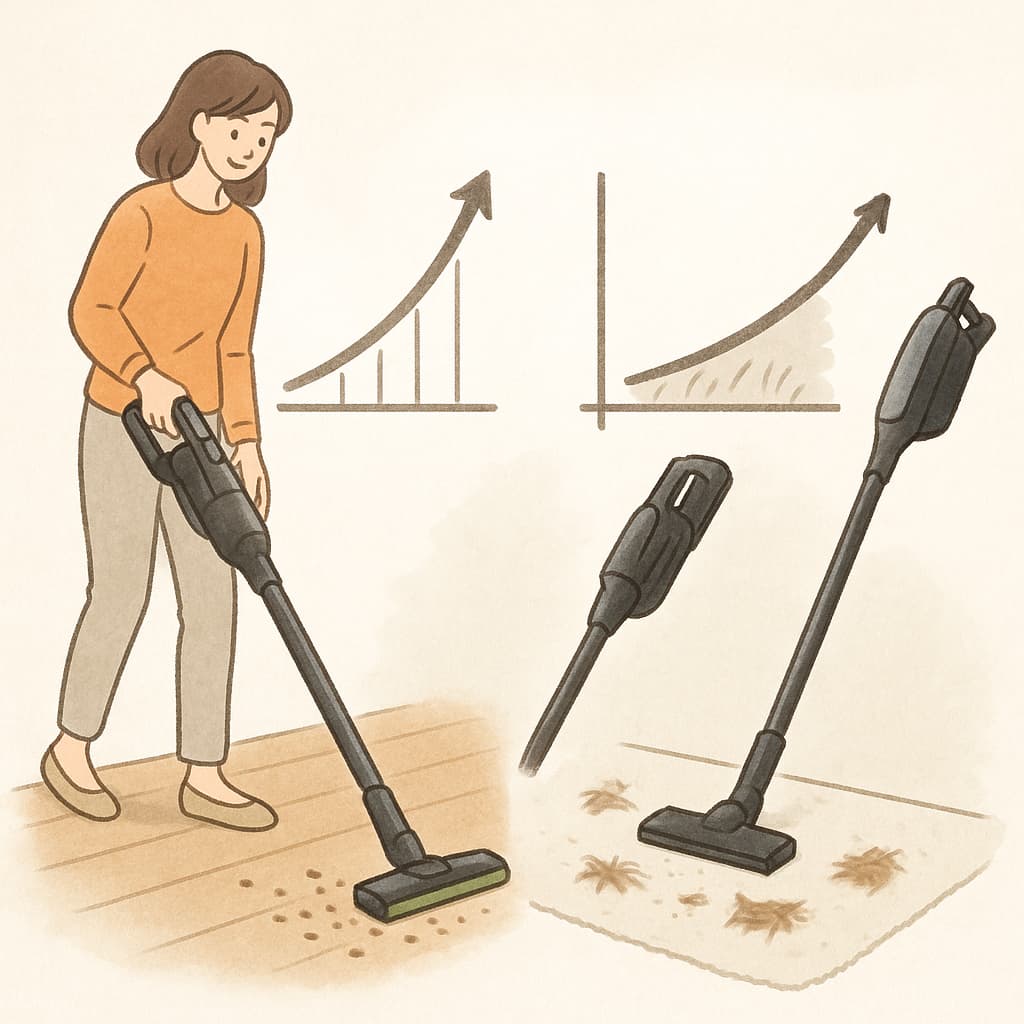 掃除機選びで重要なのは「自宅の広さと掃除頻度」がモデルと合っているかどうかです。