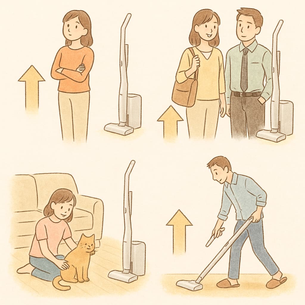 掃除機を選ぶとき、同じスペックでも「どんな暮らしをしているか」で合うモデルが変わります。