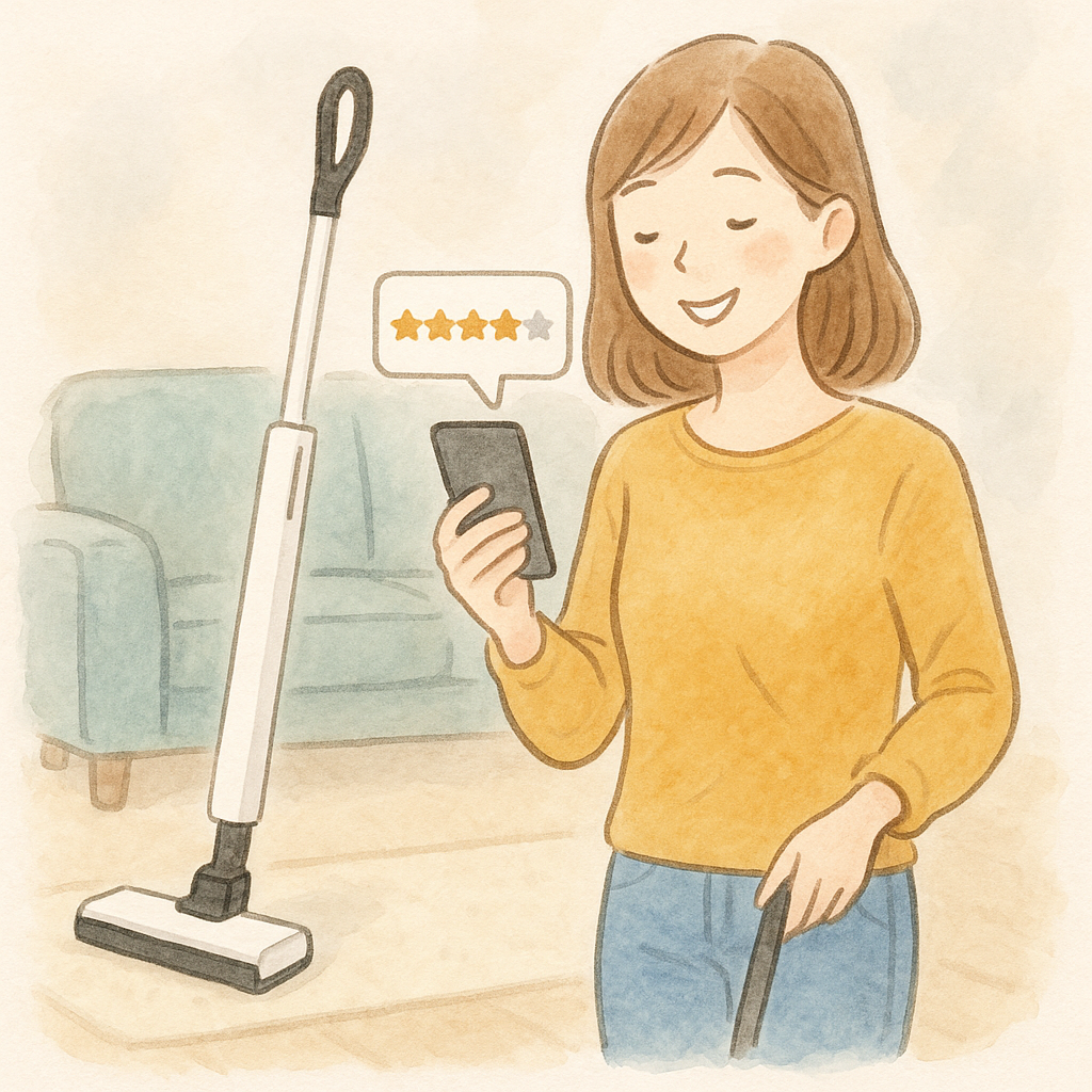 レビューを見ると、はじめてのコードレス掃除機として選ばれているケースも多く、全体的に満足度の高いアイテムであることが伝わってきます。
